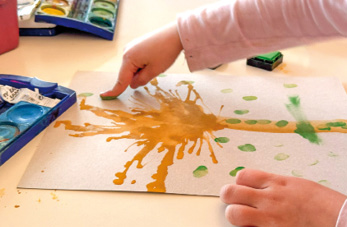 Kreative Umsetzung der GeschichteWunderbaum pusten Ein Klecks Wasserfarbe wird mit dem Strohhalm so über das Papier gepustet, dass die Farbe übers Papier verteilt wird und die Baumkrone eines Baumes entsteht. Der Baumstamm wird anschließend dazugemalt. Blätter können mit Fingerabdrücken gestaltet werden. So entstehen ganz individuelle Wunderbäume.